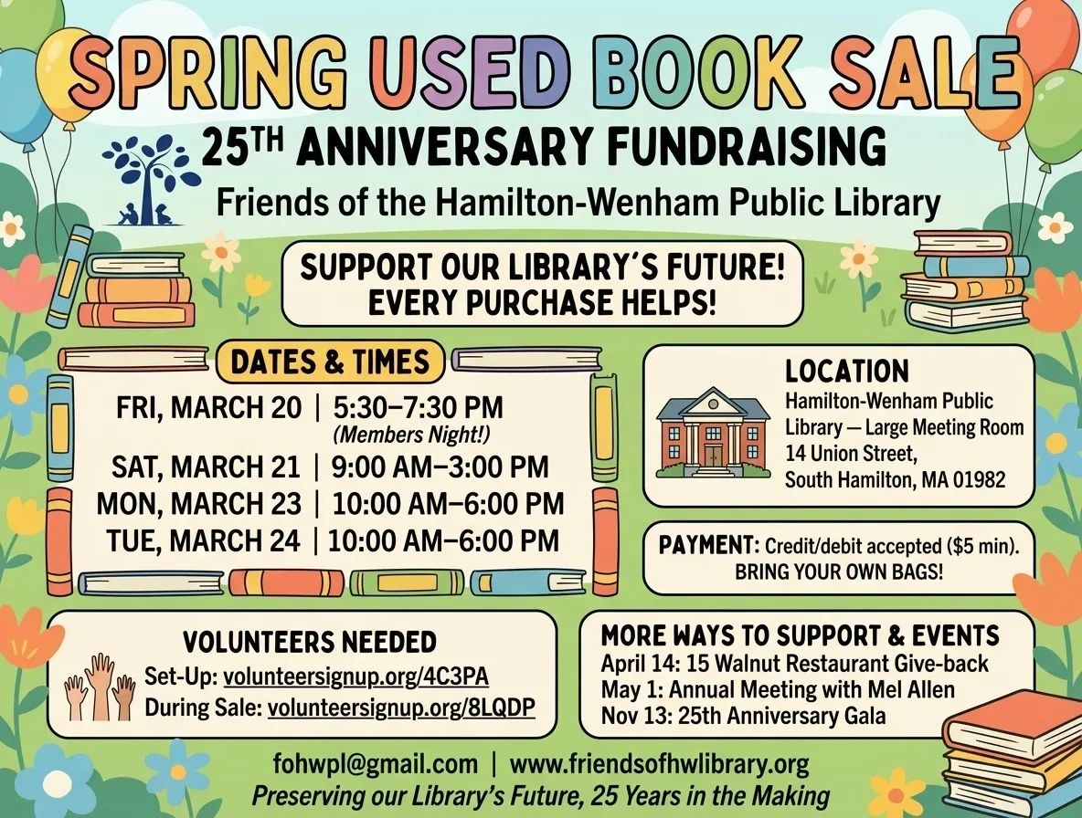 14 Union St. S. Hamilton, MA 01982 or send us a message at fohwpl@gmail.com.