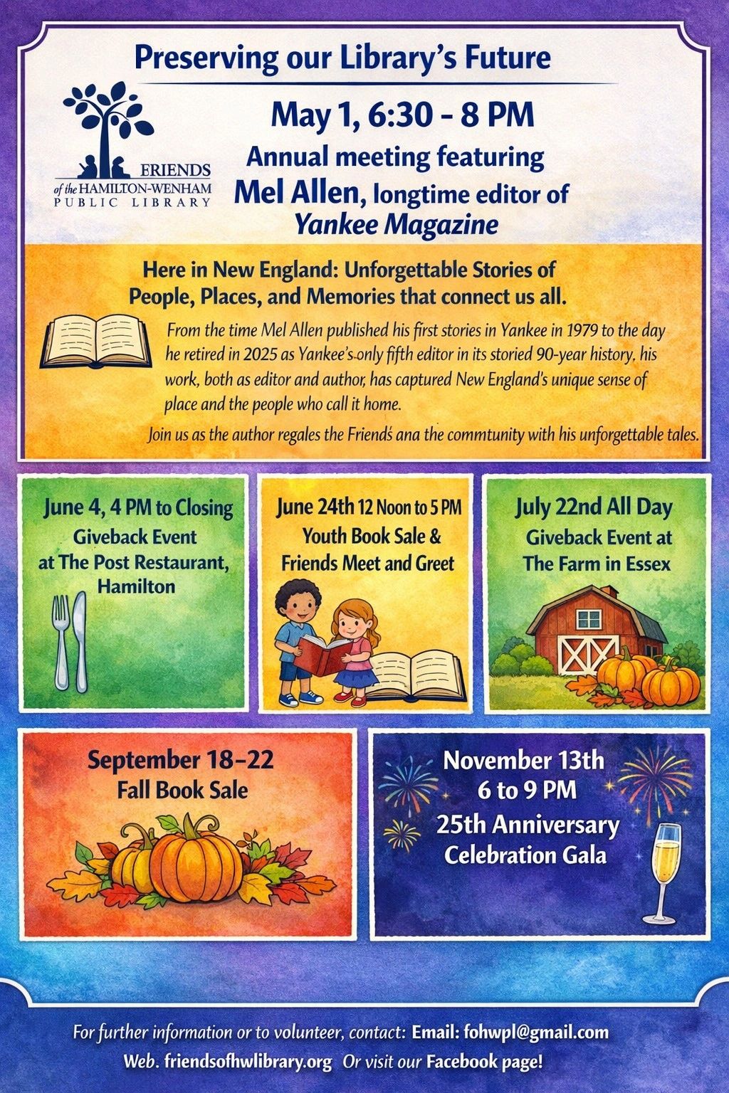 Mel Allen - long-time editor of Yankee Magazine, will speak about his book Here in New England. Books will be available for purchase